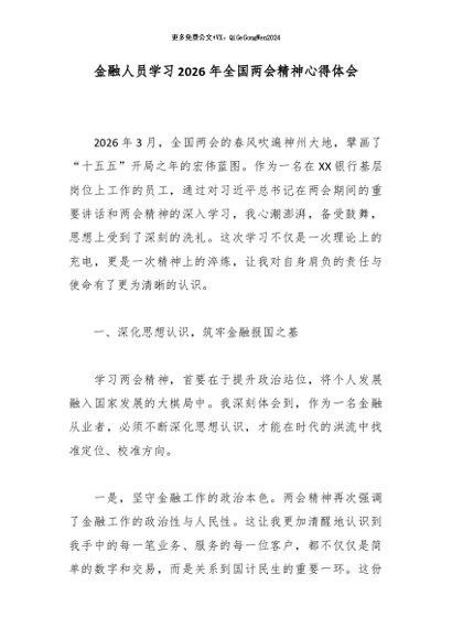 【七哥公文】2026年:金融人员学习2026年全国两会精神心得体会_副本+更多免费公文+VX:QiGeGongWen2024