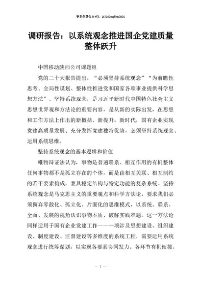 / 【七哥公文】2026年:调研报告:以系统观念推进国企党建质量整体跃升+更多免费公文+VX:QiGeGongWen2024