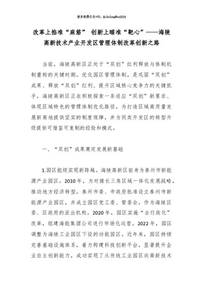 【七哥公文】2026年:改革上掐准“麻筋” 创新上瞄准“靶心”——海陵高新技术产业开发区管理体制改革创新之路_副本+更多免费公文+VX:QiGeGongWen2024