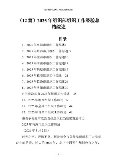 / 【七哥公文】2026年:(12篇)2025年组织部组织工作经验总结综述+更多免费公文+VX:QiGeGongWen2024