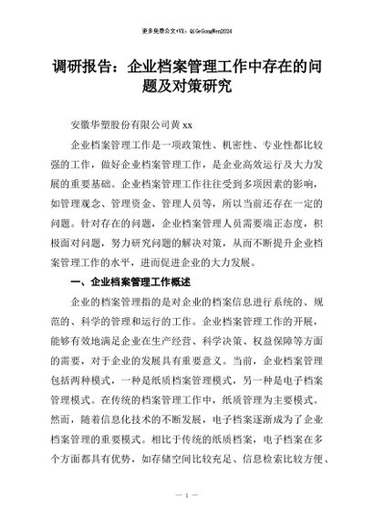 【七哥公文】2026年:调研报告:企业档案管理工作中存在的问题及对策研究+更多免费公文+VX:QiGeGongWen2024