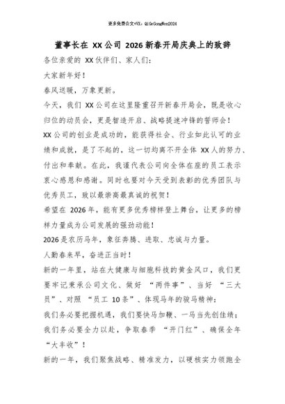 【七哥公文】2026年:董事长在 XX 公司 2026 新春开局庆典上的致辞_副本+更多免费公文+VX:QiGeGongWen2024