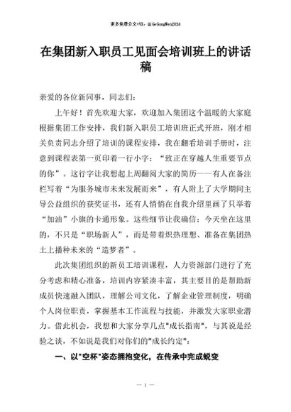 / 【七哥公文】2026年:在集团新入职员工见面会培训班上的讲话稿+更多免费公文+VX:QiGeGongWen2024