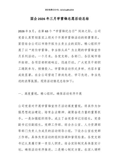 / 【七哥公文】2026年:国企2026年三月学雷锋志愿活动总结_副本+更多免费公文+VX:QiGeGongWen2024