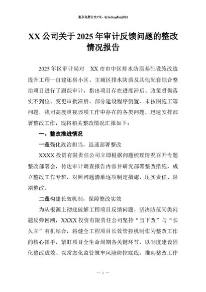 【七哥公文】2026年:XX公司关于2025年审计反馈问题的整改情况报告+更多免费公文+VX:QiGeGongWen2024