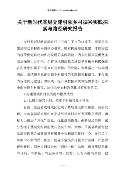 【七哥公文】2026年:关于新时代基层党建引领乡村振兴实践探索与路径研究报告+更多免费公文+VX:QiGeGongWen2024