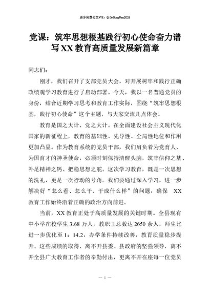 【七哥公文】2026年:党课:筑牢思想根基践行初心使命奋力谱写XX教育高质量发展新篇章+更多免费公文+VX:QiGeGongWen2024