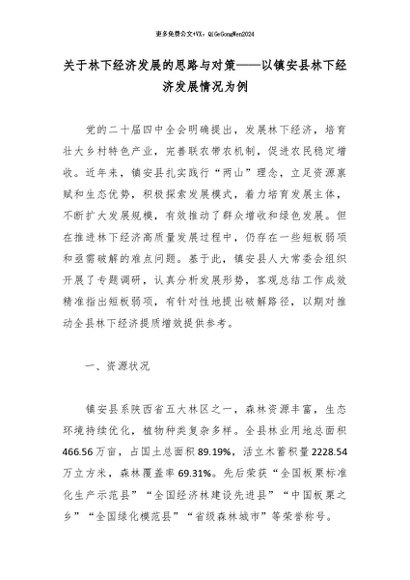 【七哥公文】2026年:关于林下经济发展的思路与对策——以镇安县林下经济发展情况为例_副本+更多免费公文+VX:QiGeGongWen2024