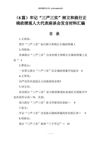 【七哥公文】2026年:(8篇)牢记“三严三实”树立和践行正确政绩观人大代表座谈会发言材料汇编+更多免费公文+VX:QiGeGongWen2024