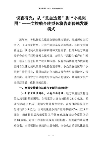 【七哥公文】2026年:调查研究:从“重金造景”到“小美突围”——文旅融合转型必将告别传统发展模式+更多免费公文+VX:QiGeGongWen2024