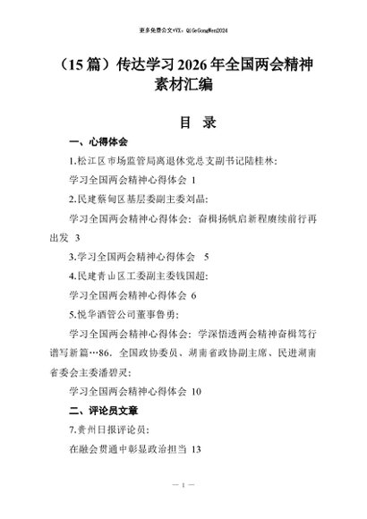 【七哥公文】2026年:(15篇)传达学习2026年全国两会精神素材汇编+更多免费公文+VX:QiGeGongWen2024