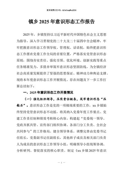 / 【七哥公文】2026年:镇乡2025年意识形态工作报告+更多免费公文+VX:QiGeGongWen2024