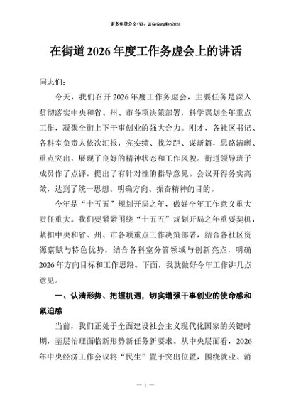 / 【七哥公文】2026年:在街道2026年度工作务虚会上的讲话+更多免费公文+VX:QiGeGongWen2024