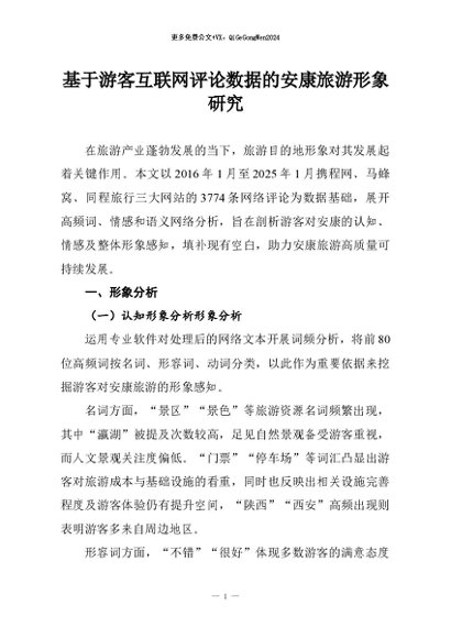 / 【七哥公文】2026年:基于游客互联网评论数据的安康旅游形象研究+更多免费公文+VX:QiGeGongWen2024