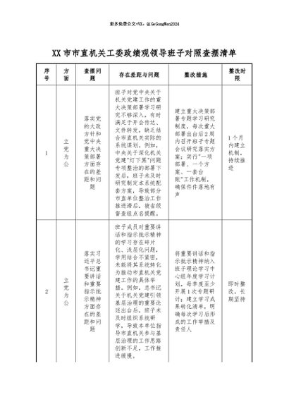 【七哥公文】2026年:XX市市直机关工委政绩观领导班子对照查摆清单+更多免费公文+VX:QiGeGongWen2024
