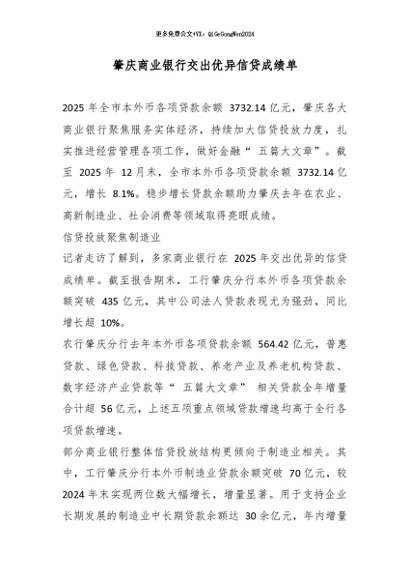 / 【七哥公文】2026年:肇庆商业银行交出优异信贷成绩单_副本+更多免费公文+VX:QiGeGongWen2024