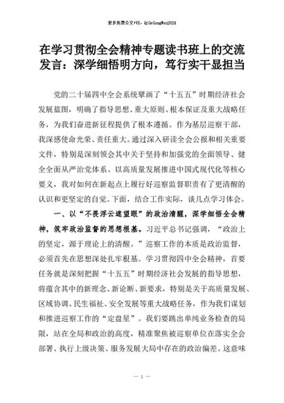 【七哥公文】2026年:在学习贯彻全会精神专题读书班上的交流发言:深学细悟明方向,笃行实干显担当+更多免费公文+VX:QiGeGongWen2024