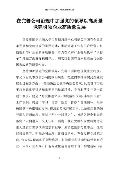【七哥公文】2026年:在完善公司治理中加强党的领导以高质量党建引领企业高质量发展+更多免费公文+VX:QiGeGongWen2024