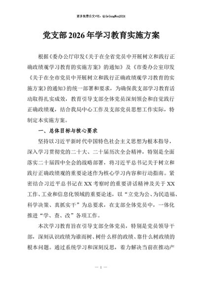 / 【七哥公文】2026年:党支部2026年学习教育实施方案+更多免费公文+VX:QiGeGongWen2024