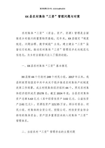 / 【七哥公文】2026年:XX县农村集体“三资”管理问题与对策_副本+更多免费公文+VX:QiGeGongWen2024