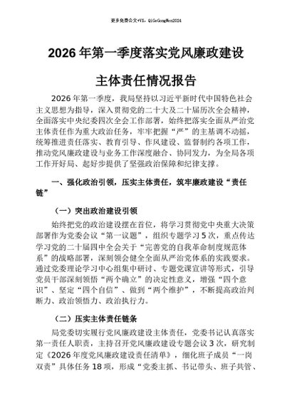【七哥公文】2026年:2026年第一季度落实党风廉政建设主体责任情况报告+更多免费公文+VX:QiGeGongWen2024
