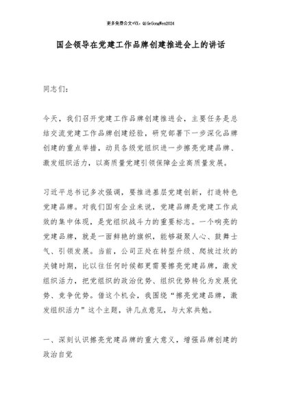 / 【七哥公文】2026年:国企领导在党建工作品牌创建推进会上的讲话_副本+更多免费公文+VX:QiGeGongWen2024