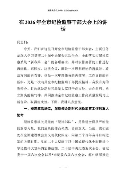 / 【七哥公文】2026年:在2026年全市纪检监察干部大会上的讲话+更多免费公文+VX:QiGeGongWen2024