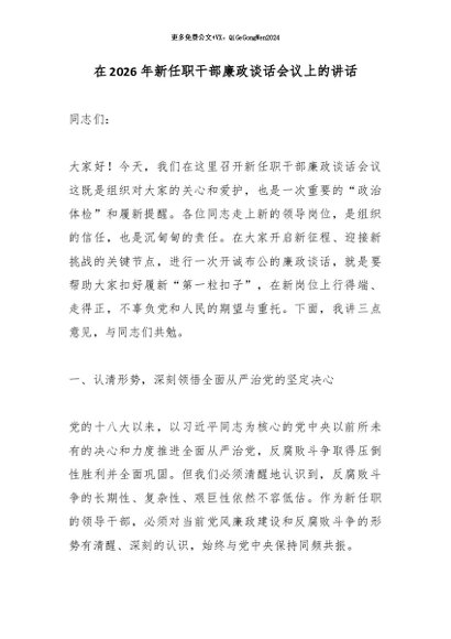 【七哥公文】2026年:在2026年新任职干部廉政谈话会议上的讲话_副本+更多免费公文+VX:QiGeGongWen2024