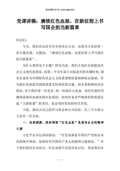 【七哥公文】2026年:党课讲稿:赓续红色血脉,在新征程上书写国企担当新篇章+更多免费公文+VX:QiGeGongWen2024