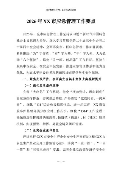 / 【七哥公文】2026年:2026年XX市应急管理工作要点+更多免费公文+VX:QiGeGongWen2024