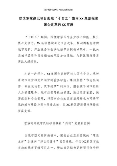 【七哥公文】2026年:以改革破题以项目落地“十四五”期间XX集团推进国企改革的XX实践_副本+更多免费公文+VX:QiGeGongWen2024