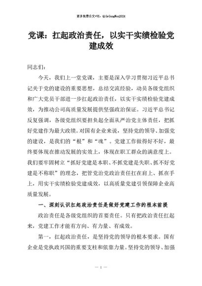 / 【七哥公文】2026年:党课:扛起政治责任,以实干实绩检验党建成效+更多免费公文+VX:QiGeGongWen2024