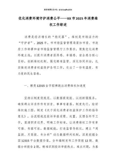 【七哥公文】2026年:优化消费环境守护消费公平——XX市2025年消费维权工作综述_副本+更多免费公文+VX:QiGeGongWen2024