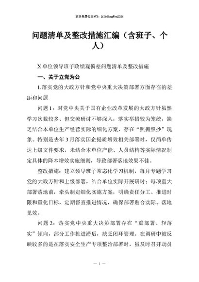 【七哥公文】2026年:问题清单及整改措施汇编(含班子、个人)+更多免费公文+VX:QiGeGongWen2024