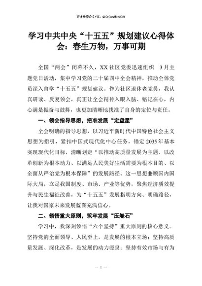 【七哥公文】2026年:学习中共中央“十五五”规划建议心得体会:春生万物,万事可期+更多免费公文+VX:QiGeGongWen2024