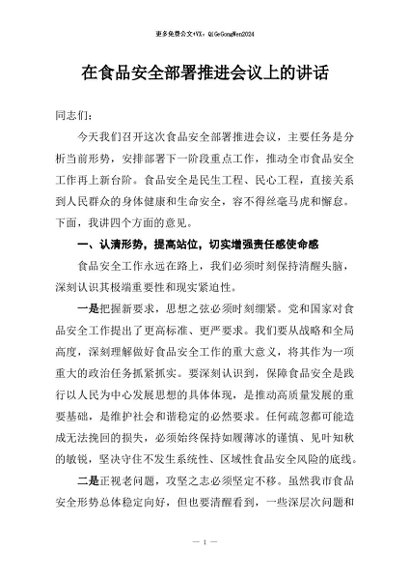 / 【七哥公文】2026年:在食品安全部署推进会议上的讲话+更多免费公文+VX:QiGeGongWen2024