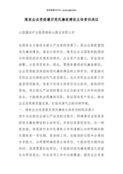 / 【七哥公文】2026年:煤炭企业党委履行党风廉政建设主体责任浅议_副本+更多免费公文+VX:QiGeGongWen2024
