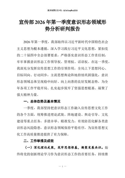 【七哥公文】2026年:宣传部2026年第一季度意识形态领域形势分析研判报告+更多免费公文+VX:QiGeGongWen2024