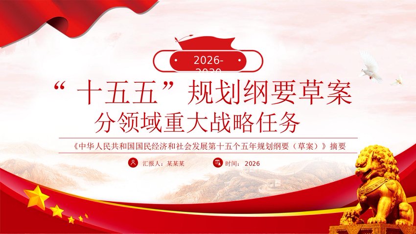 / 【七哥公文】2026年:PPT:“十五五”规划纲要草案分领域重大战略任务+更多免费公文+VX:QiGeGongWen2024