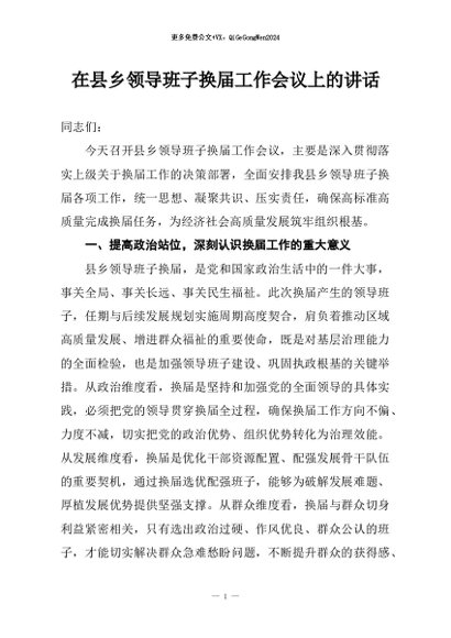 / 【七哥公文】2026年:在县乡领导班子换届工作会议上的讲话+更多免费公文+VX:QiGeGongWen2024