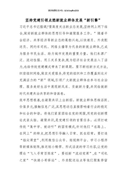 / 【七哥公文】2026年:坚持党建引领点燃新就业群体发展“新引擎”_副本+更多免费公文+VX:QiGeGongWen2024