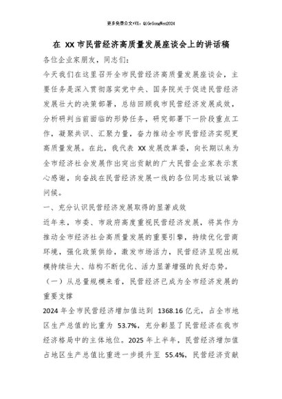 【七哥公文】2026年:在 XX 市民营经济高质量发展座谈会上的讲话稿_副本+更多免费公文+VX:QiGeGongWen2024