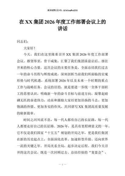 / 【七哥公文】2026年:在XX集团2026年度工作部署会议上的讲话+更多免费公文+VX:QiGeGongWen2024