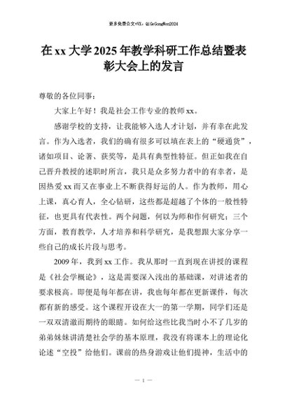 【七哥公文】2026年:在xx大学2025年教学科研工作总结暨表彰大会上的发言+更多免费公文+VX:QiGeGongWen2024