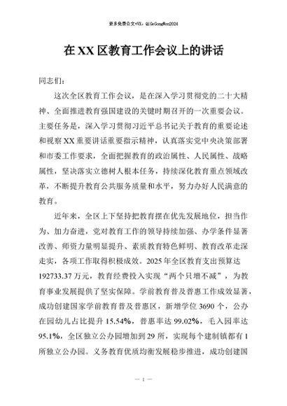 / 【七哥公文】2026年:在XX区教育工作会议上的讲话+更多免费公文+VX:QiGeGongWen2024