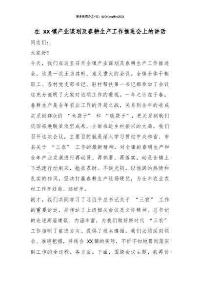 【七哥公文】2026年:在 XX 镇产业谋划及春耕生产工作推进会上的讲话_副本+更多免费公文+VX:QiGeGongWen2024