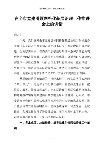 / 【七哥公文】2026年:在全市党建引领网格化基层治理工作推进会上的讲话+更多免费公文+VX:QiGeGongWen2024