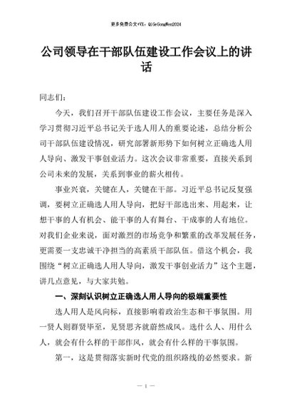 / 【七哥公文】2026年:公司领导在干部队伍建设工作会议上的讲话+更多免费公文+VX:QiGeGongWen2024