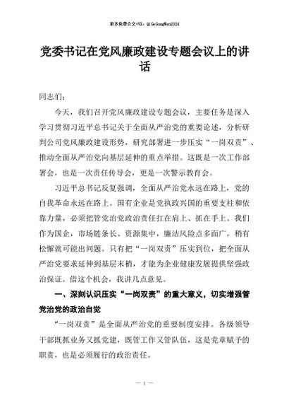 / 【七哥公文】2026年:党委书记在党风廉政建设专题会议上的讲话+更多免费公文+VX:QiGeGongWen2024