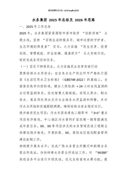 【七哥公文】2026年:水务集团 2025 年总结及 2026 年思路_副本+更多免费公文+VX:QiGeGongWen2024